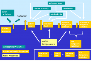 - Remark: latent heat and sensible heat depend on water temperature so they should be computed by the model. Net long wave radiation is a balance between downward long wave radiation (emission from the atmosphere) and upward long wave radiation (emission from water) and should be computed by the model.