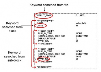 The reading procedure is similar to the keywords, but this time the 2 tags must be successfully found in order to define a block, identifying the line numbers where the block begins and ends. This allows a regular keyword search algorithm to work only between the 2 tags. A block can also be defined inside another block, therefore creating a hierarchical structure, in where up to three levels are allowed.