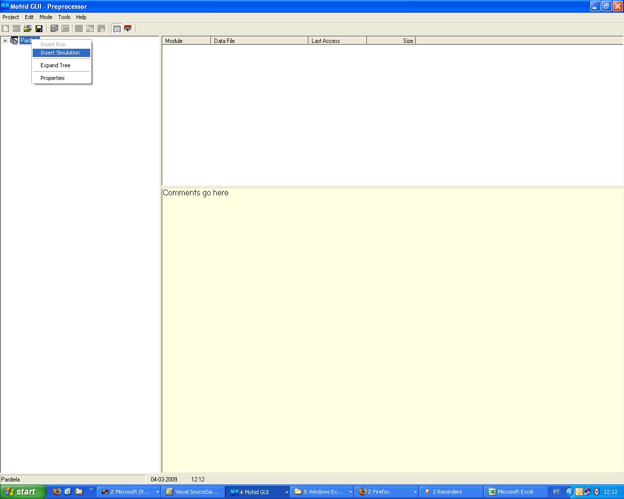How to insert simulation in MOHID GUI