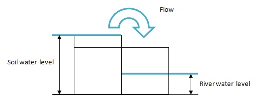 • Flow to the river when the water level of the river is lower that soil one