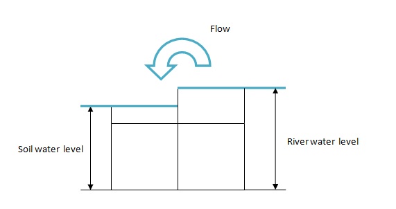 • Flow from the river when the water level is higher than the soil one